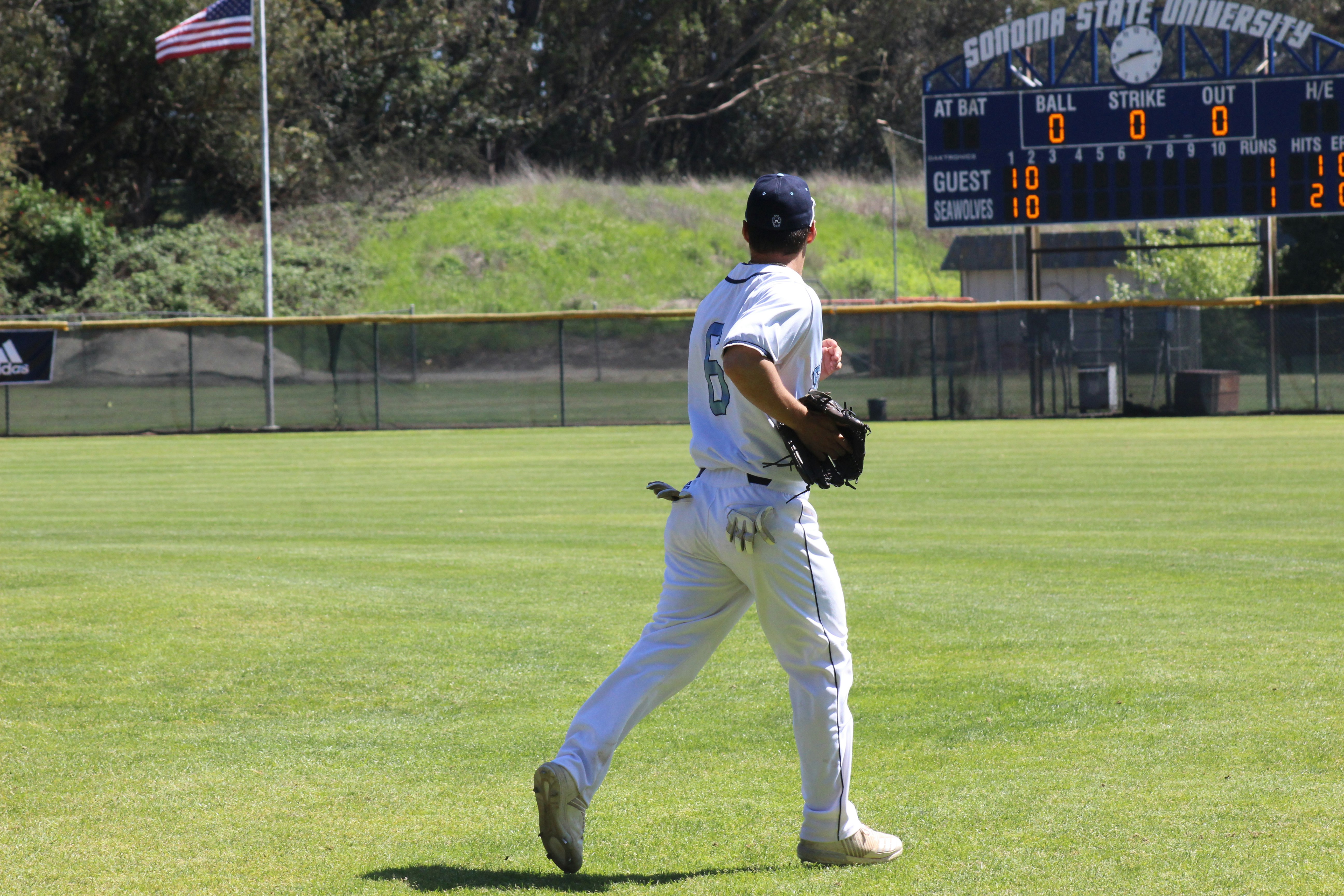 試合でもう一歩フライに届かず、
